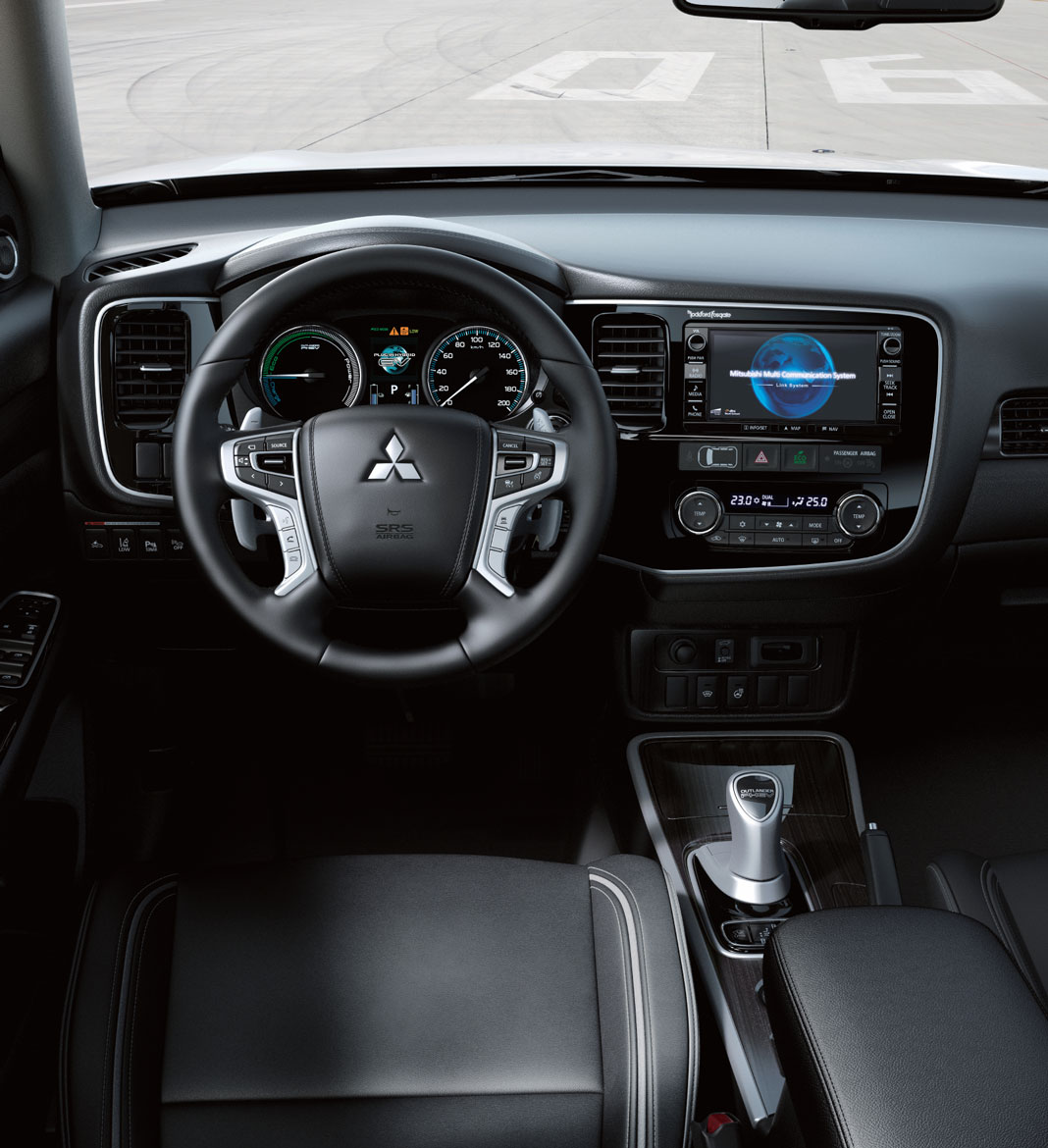 Il concetto di mobilità sostenibile si sposa con una accurata ricerca formale in tre modelli particolarmente “puliti” proposti da Mitsubishi. Partiamo dall’Outlander PHEV (Plug in-Hybrid-Electric-Vehicle) model year 2016: lanciato nel 2012 e prodotto in oltre 320mila unità, rappresenta oggi il veicolo con questa tecnologia più venduto in Europa. Monta due motori elettrici da 82 CV (anteriore e posteriore) e un motore 2.0 a benzina da 121 CV (anteriore); può funzionare in: elettrico puro; elettrico seriale con il motore termico che supporta gli altri due; ibrido parallelo con i motori elettrici che supportano quello termico. Senza rifornimenti o ricariche percorre 800 km, di cui 52 in elettrico. Deriva dal New Outlander lanciato lo scorso settembre e veicola le sue particolarità tecniche con una personalizzazione esterna e interna. Il frontale è molto diverso, la fiancata dispone di “minigonna” e nuovi cerchi in lega, il posteriore offre la finitura in tinta della parte bassa. Nell’abitacolo sono specifici il volante, il tunnel centrale, la leva selettrice più alcuni comandi del sistema ibrido, i tessuti che meglio si adattano alla temperatura corporea (limitando l’uso del climatizzatore) e la pelle nera o tabacco.
