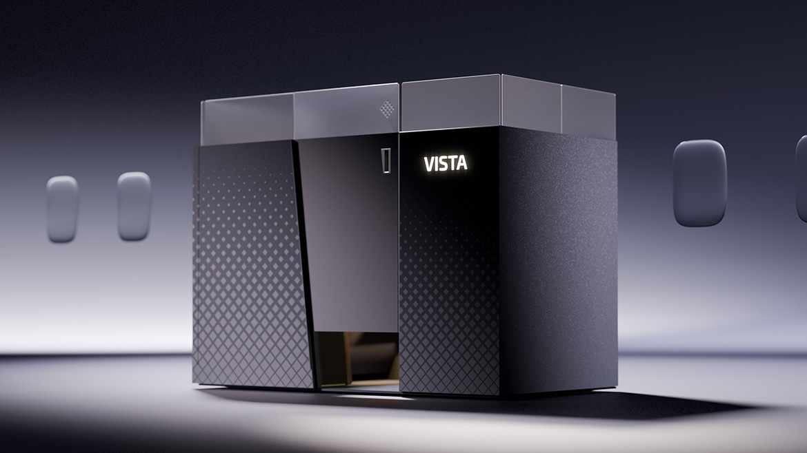 Ecosistema MiniSuite: un’architettura completa per lo stivaggio personale in prima fila che comprende un armadio verticale a tutta altezza (cappotti, abiti, completi), scomparti per scarpe, laptop e oggetti personali, vani portaoggetti avvolgenti integrati nel sedile accanto, tasche portaoggetti di facile accesso e un minibar auto-sollevante elegantemente nascosto all’interno della struttura. Inoltre Vista prevede un sistema di tavoli versatile e intelligente: sono indipendenti, offrono fino a 1.000 pollici quadrati di spazio utilizzabile, più di molte scrivanie da ufficio domestiche o di un tavolo per due in un ristorante. Rilassarsi, lavorare o cenare contemporaneamente. Il tavolo laterale offre spazio per dispositivi, bevande e illuminazione d’ambiente, rafforzando l’atmosfera da “suite privata”.