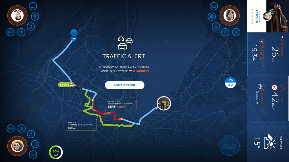 For the driver, the Peugeot Traveller i-Lab is the ideal business environment : Peugeot connected 3D navigation, Peugeot Connect Fleet Management service, Visio Park.