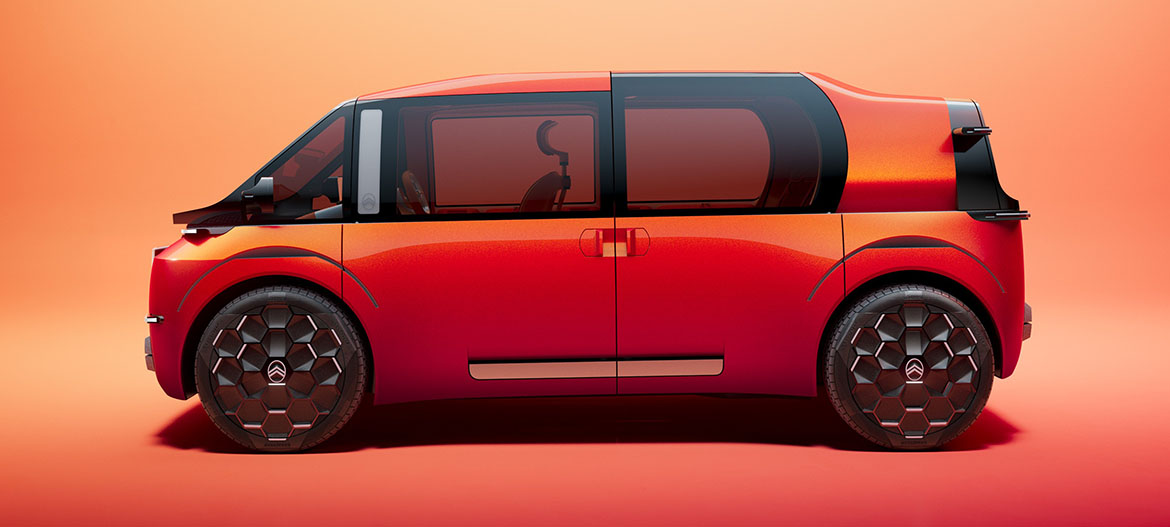 With its boldness and know-how, Citroën is now exploring highly innovative solutions to reinvent livability and reinterpret the spirit of the minivans and minibuses that have marked its history. Elo was designed as an everyday companion: a place to rest, play, or work—rEst, pLay, wOrk—thanks to its complete and intuitive modularity. The car takes full advantage of a 100% electric architecture, offering compact dimensions that conceal an exceptional interior space. With a compact minivan design (4.10 m), it is at home in urban areas, which are its home turf, but also invites you to get out of the city and enjoy a trip in the open air. Thanks to its spacious and modular interior, which can accommodate up to six people, it meets the needs of an increasingly hectic lifestyle of travel, leisure, family activities, teleworking, and spontaneous trips.