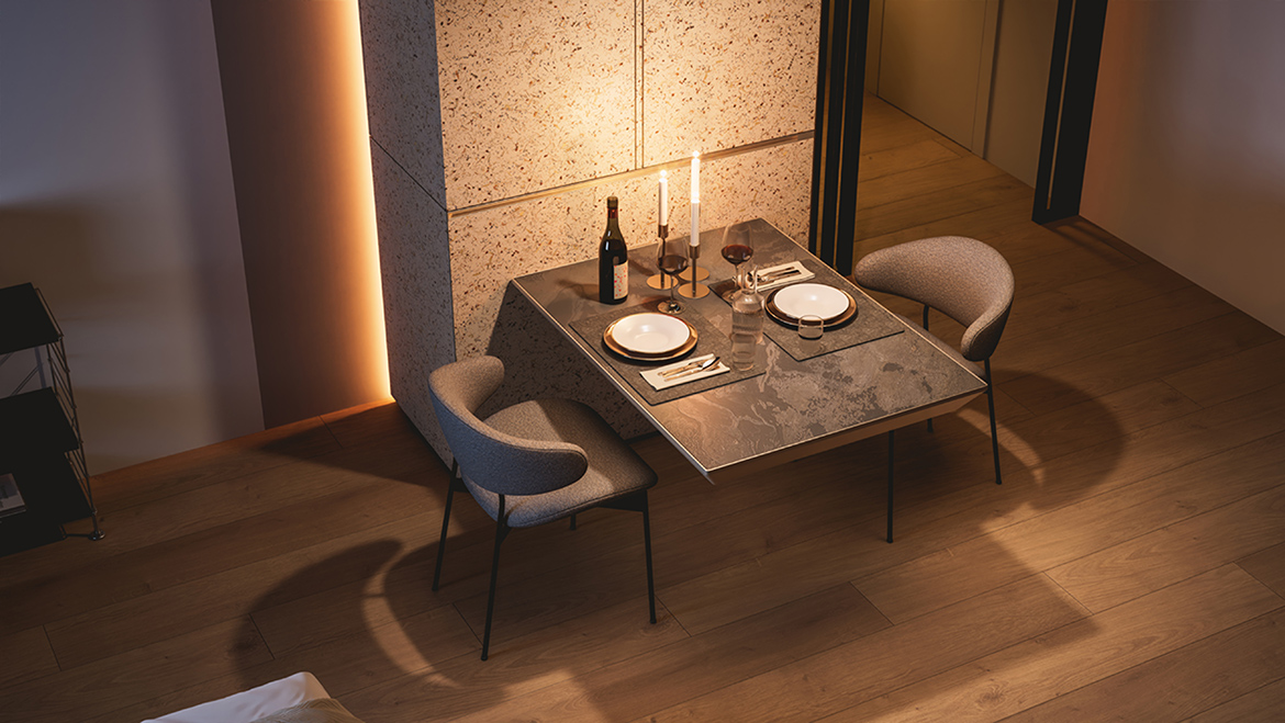During Milan Design Week, Miele unveiled its innovative “Miele Compact Living: Kitchen Unit powered by Hettich” concept at its Experience Center in the Brera Design District. The idea, developed in collaboration with Hettich—a long-standing German manufacturer of hardware and motorized accessories for furniture—is to address the trend toward smaller living spaces with a multifunctional unit (kitchen, pantry, and living functions) suited to daily life and remote work. This sort of equipped cabinet can change its appearance from morning to night, transforming—via an app—from a workspace in the morning (possibly featuring a microwave oven) to a kitchen with a cooking surface for lunch, and then, with appliances concealed, into a pleasant corner for dinner and conversation.
